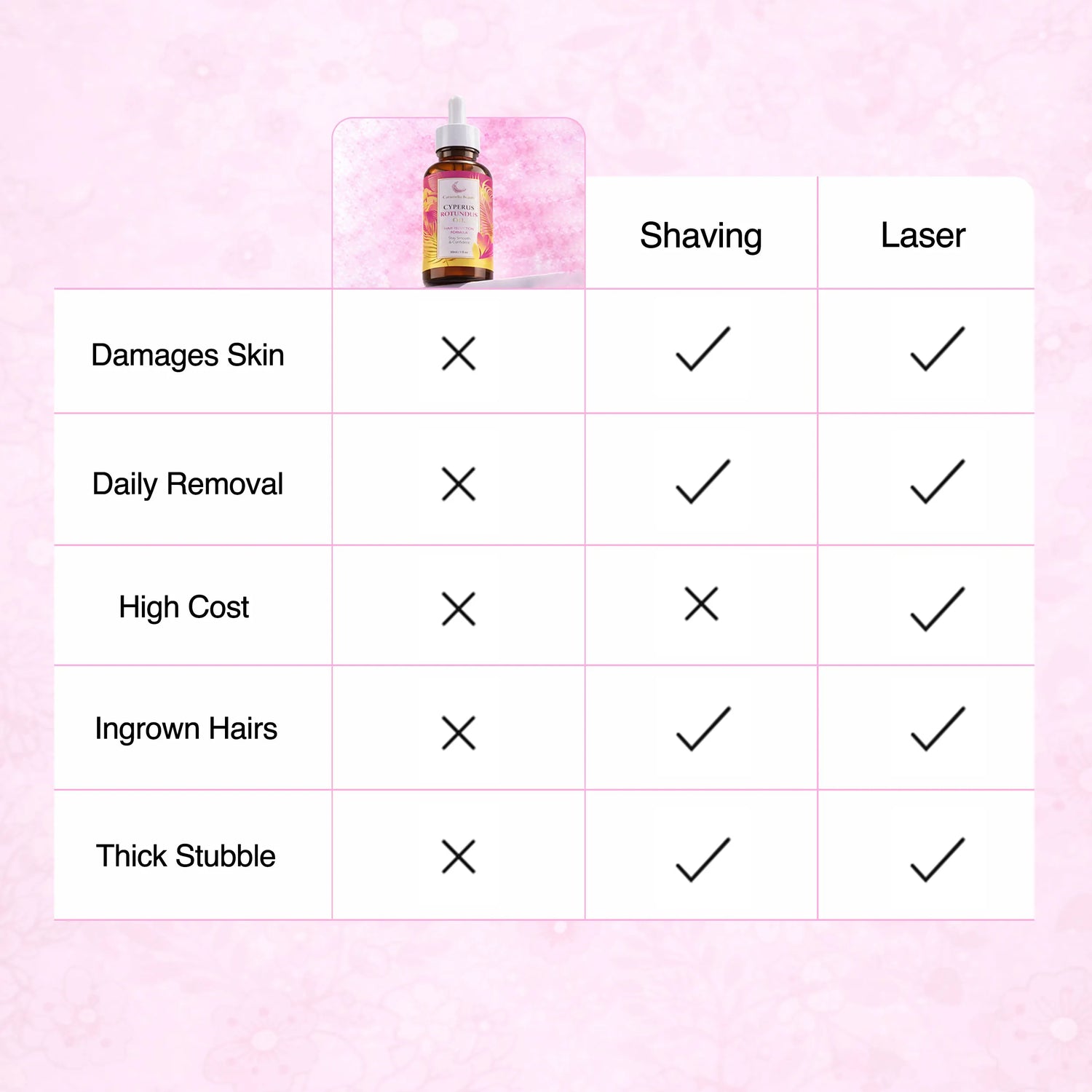 Our advanced Cyperus Rotundus formula has been clinically studied for its hair growth inhibiting properties, making it the natural alternative that healthcare professionals actually recommend to their patients.
