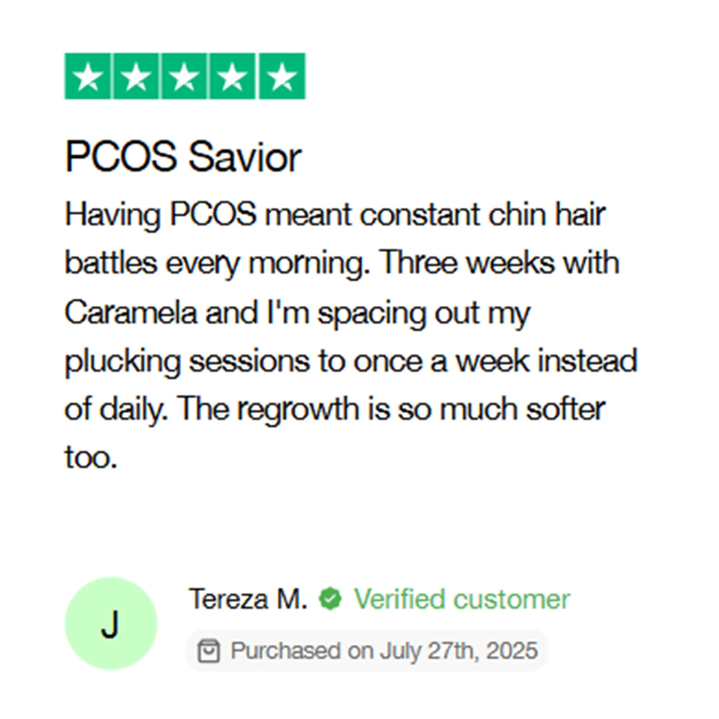 Unlike harsh chemicals or expensive laser treatments, Caramela Beauty works gently with your skin's natural processes to gradually slow hair regrowth - without irritation or side effects. Thousands of women have already discovered smoother skin that lasts longer between hair removal sessions.
